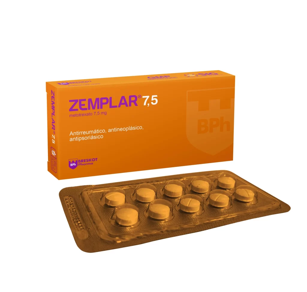 Acción terapéutica: Antirreumático, antineoplásico, antipsoriásico. Principio activo: Metotrexato. Descripción: Metotrexato 7,5 mg. Presentación: Estuche x 10 comprimidos. Forma Farmacéutica: Comprimido. VENTA BAJO PRESCRIPCIÓN MÉDICA. DESCARGAR INSERTO